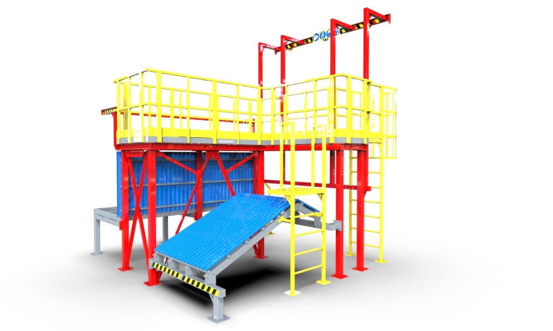 Полигон выполнен из стальных сварных модулей, обрабатываемых пескоструем и покрываемых полимерной защитой. Элементы конструкции соединяются болтами.